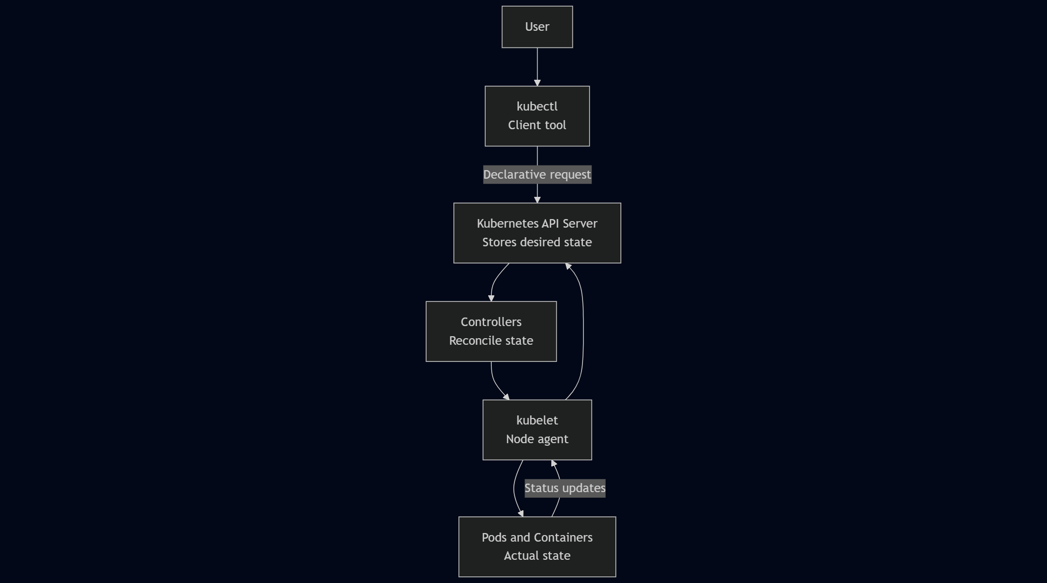 You don’t execute actions in Kubernetes. You declare intent, and the system reconciles state.
